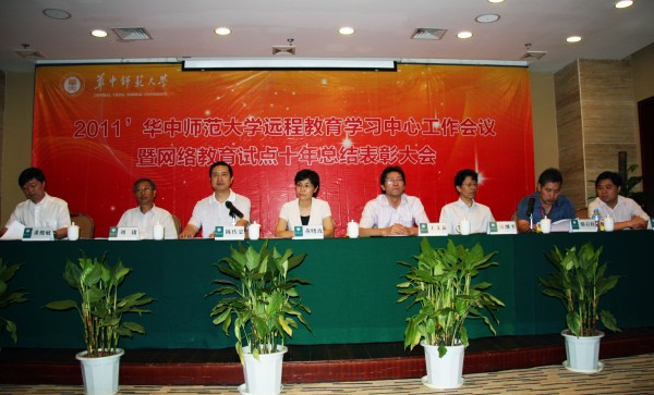 7月26日,华中师范大学现代远程教育学习中心工作会议暨网络教育十年总结表彰大会在武昌雄楚国际大酒店隆重召开。校长马敏为大会题词:打造网络教育品牌。副校长黄晓玫教授、省教育厅高教处王文森处长到会,职业与继续教育学院陈传忠院长、吴毅华书记、骆启桂常务副院长、董俊敏、吴绍靖副院长出席会议,来自全国30多个校外学习中心的代表60余人,以及职业与继教院部分从事网络教育工作的教职员工等,共计80多人参加了会议。